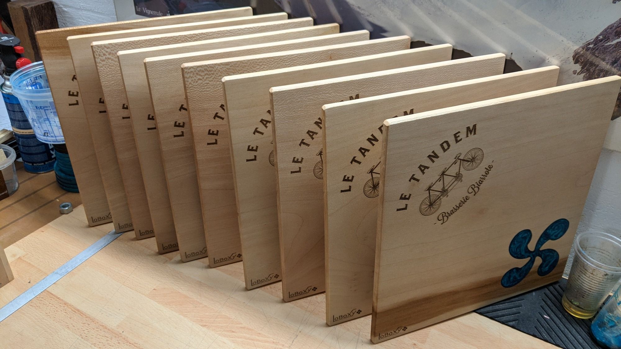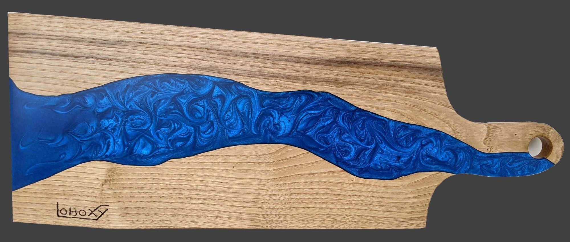L'ensemble est complètement personnalisable : essence du bois , forme , couleur de la résine . N'hésitez pas à me contacter